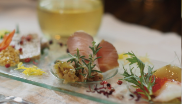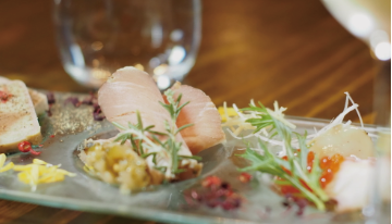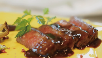 ・自家製 黒毛和牛のローストビーフ 漬け卵黄とともに550円